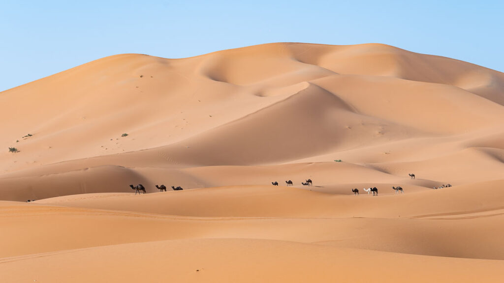 Als hoogtepunt van de reis brengen we twee onvergetelijke nachten door in een luxe woestijnkamp in de Sahara. Hier slaap je in je eigen comfortabele tent met een privé badkamer, midden in de adembenemende rust van de woestijn. Een ervaring die je niet snel zult vergeten!