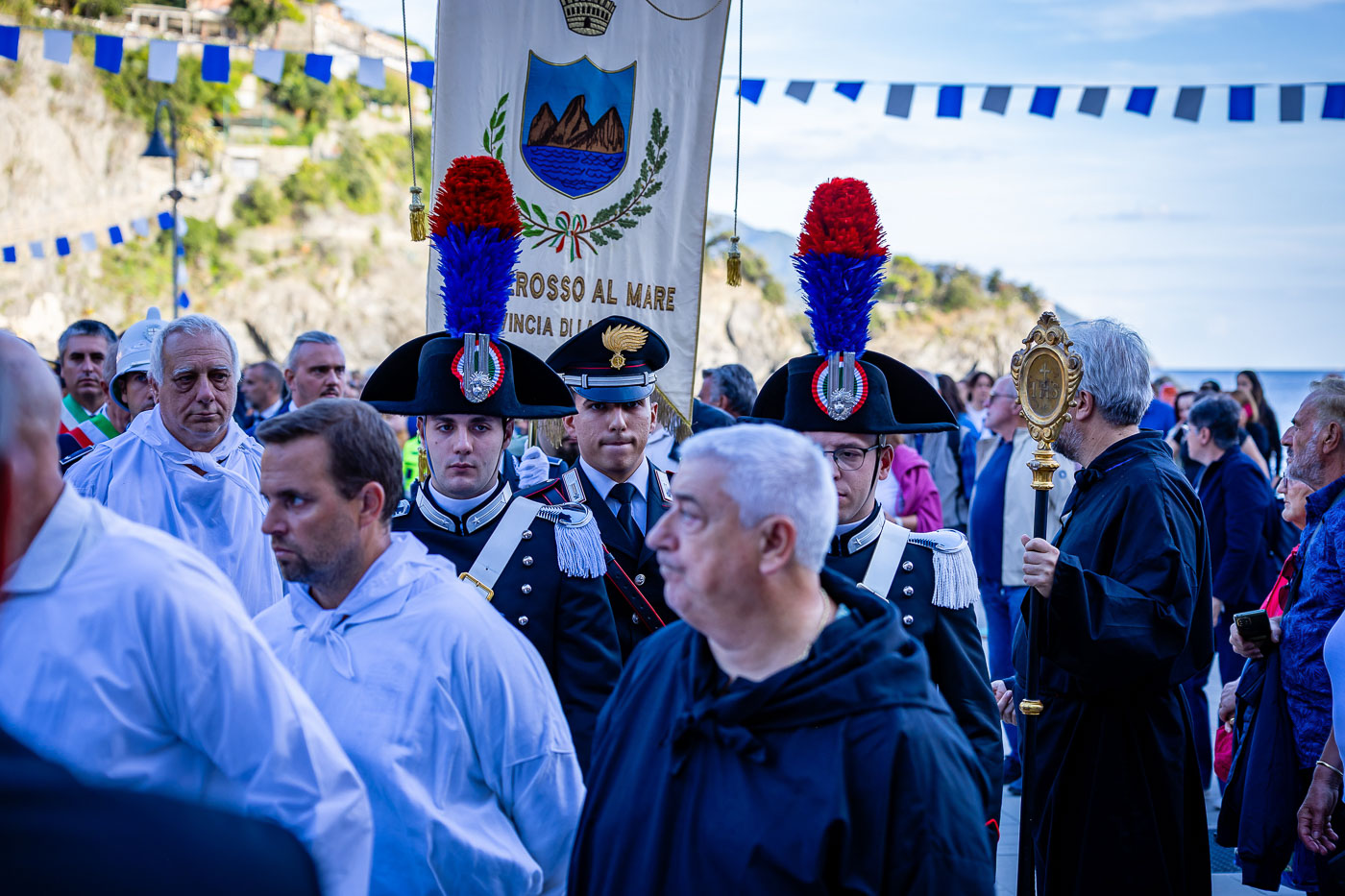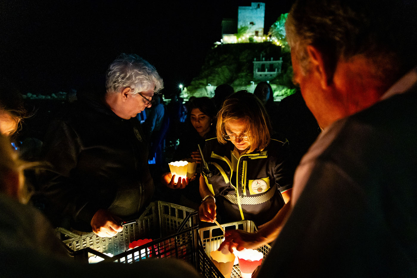 Met de eerste boot varen we langs Portovenere en de vijf beroemde dorpen. Vanaf het dek zien we hoe ze opduiken uit de kliffen – een kleurrijke ketting van huizen, kerken en vissershavens. Monterosso is ons eerste doel. Het is feestdag: de terugkeer van Maria wordt gevierd, eens in de 25 jaar. Processies, muziek, kaarslicht op het water – alles ademt traditie.