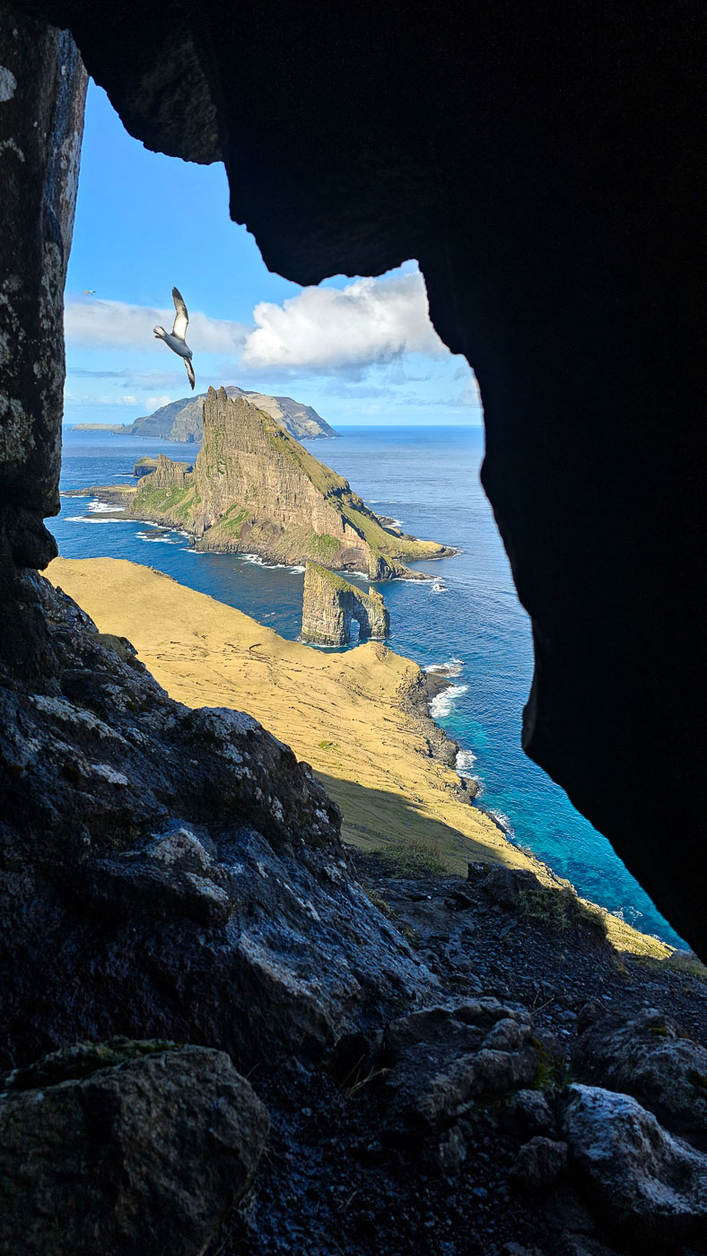 Één van de hoogtepunten was voor mij de tocht naar Drangarnir. We werden met de boot afgezet, liepen via een pittige klim naar de beroemde grot en het uitzichtpunt op de rotsbogen. Terwijl iedereen zijn plek zocht voor die ene perfecte compositie, keek ik even rond. Wind, golven, stilte, pure schoonheid. Dit is waarom ik dit werk doe.
