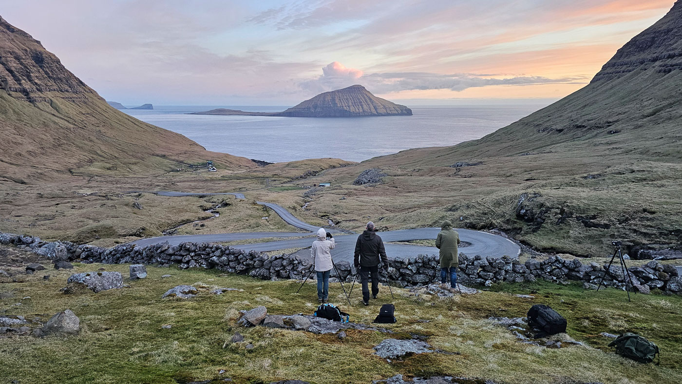 Er zijn van die plekken waar je als fotograaf steeds opnieuw naar terug wilt. De Faeröer is zo’n bestemming. Geen dag is hier hetzelfde. Je rijdt een tunnel uit en ziet de zon doorbreken, vijf minuten later staat de lucht op standje apocalypse. En juist dat spel tussen licht, wolken, regen en ruige landschappen maakt dit tot één van mijn favoriete plekken om met een groep op pad te zijn. Afgelopen week was ik weer met zes enthousiaste fotografen op pad – en het was een geweldige reis.