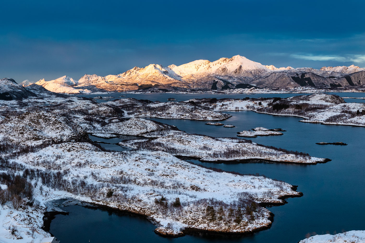 De reis naar de Lofoten begint! Na een vlucht met één of twee tussenstops landen we aan het einde van de middag of avond op de luchthaven Evenes. Hier halen we de huurauto op en rijden we naar ons nabijgelegen hotel. Het uitzicht op de karakteristieke Tjeldsund-brug biedt direct al een eerste kans om foto’s te maken. Vanaf de eerste nacht houden we de noorderlichtvoorspellingen scherp in de gaten. Wie weet beginnen we deze reis al met het fotograferen van dit magische fenomeen!
