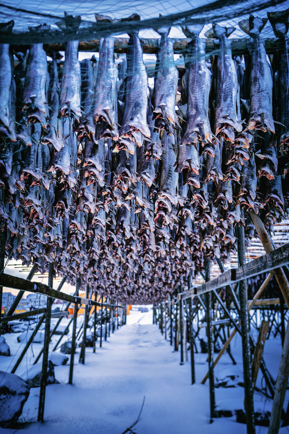 De winter daarentegen kleedt de Lofoten in een magisch wit tapijt. De besneeuwde bergtoppen, bevroren fjorden en het contrast met de felrode vissershuisjes maken het landschap sprookjesachtig. Daarnaast biedt de lage winterzon een langdurig gouden uur, perfect voor fotografen. Het noorderlicht is in de winter op zijn meest indrukwekkend en zorgt voor adembenemende nachtelijke beelden.