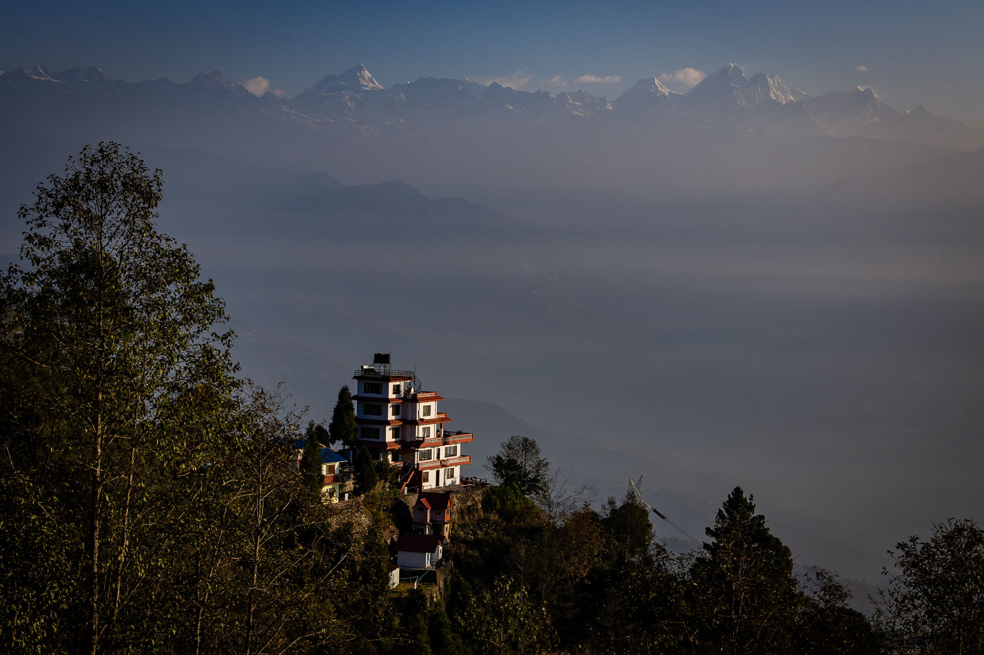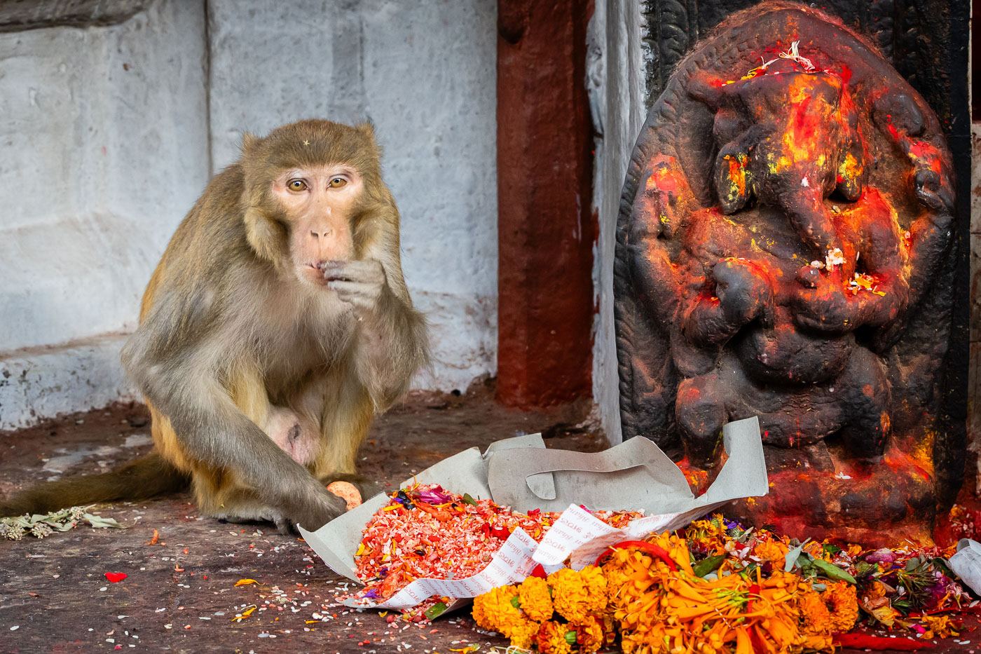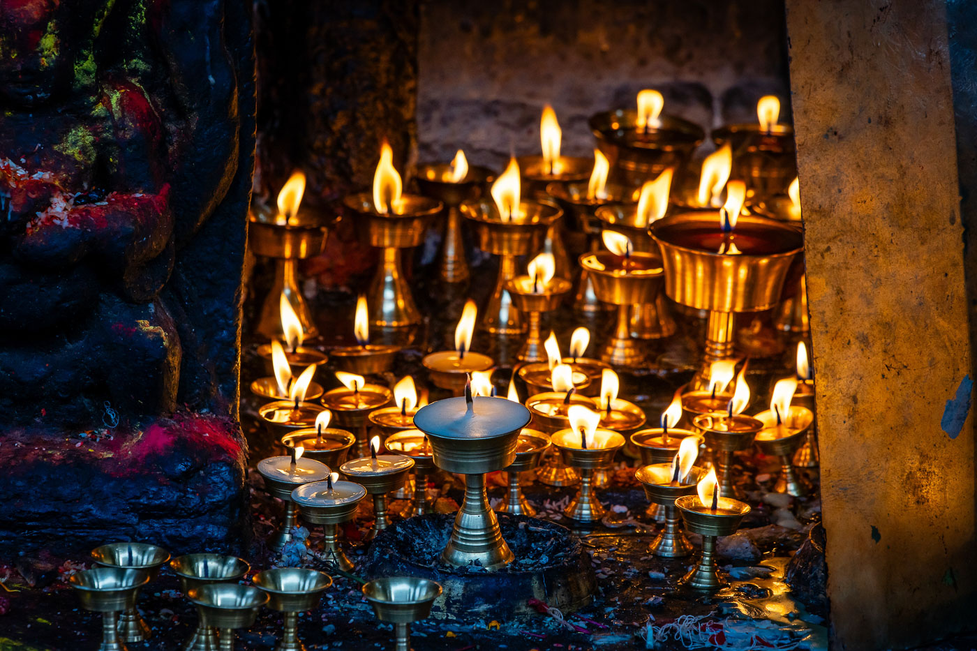Met het vliegtuig reizen we naar Pokhara, waar we verblijven in Sarangkot, hoog boven de stad. We hopen op zonsopkomst met uitzicht op de Himalaya. Helaas blijft het mistig. Maar: ook zonder bergen is er genoeg te fotograferen. Denk aan het gouden beeld van Ganesh, de kleurrijke kleding van locals en de landschappen met laaghangende nevel. Fototip: gebruik mist om een mysterieuze sfeer neer te zetten, werk met silhouetten.