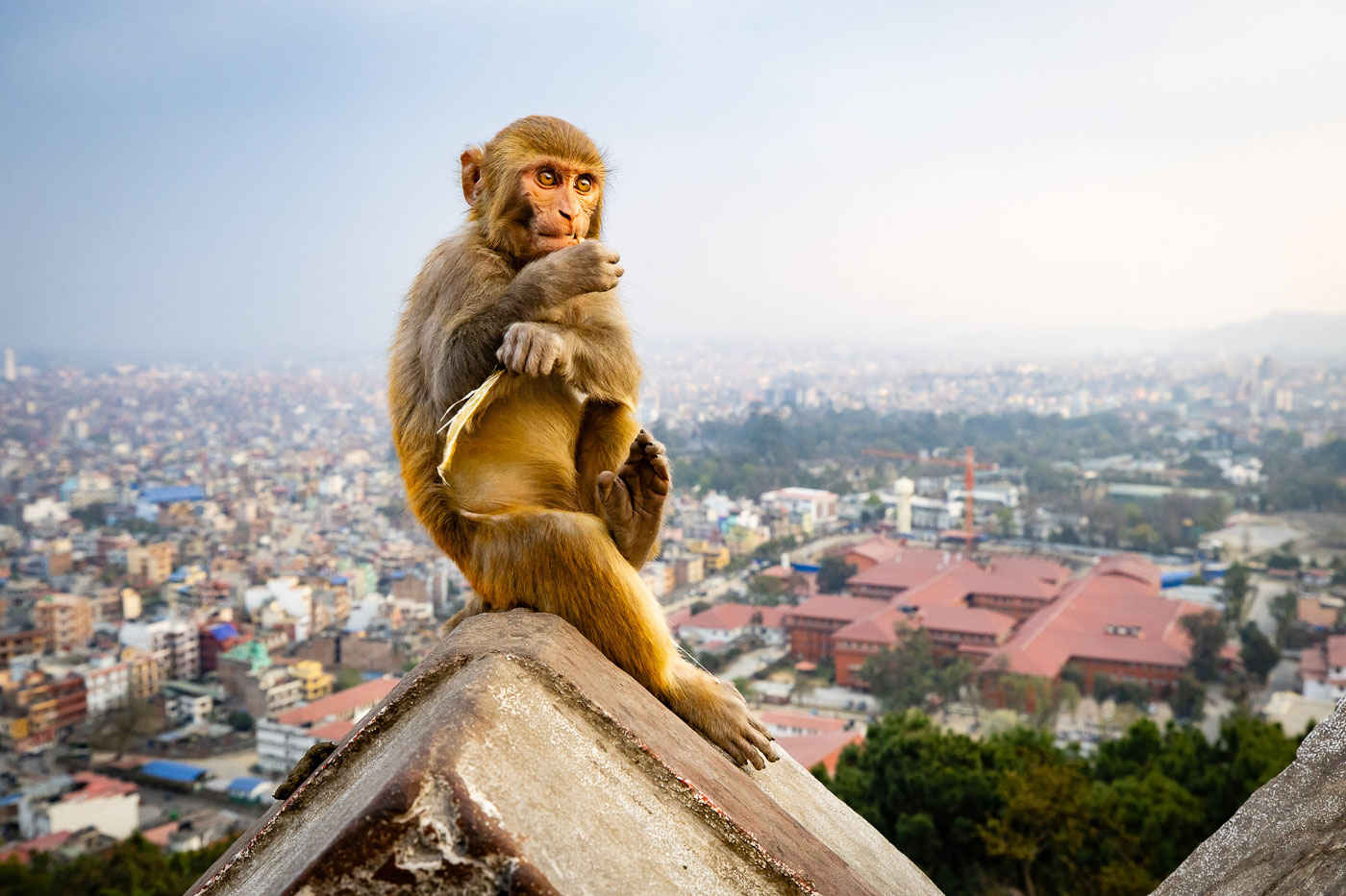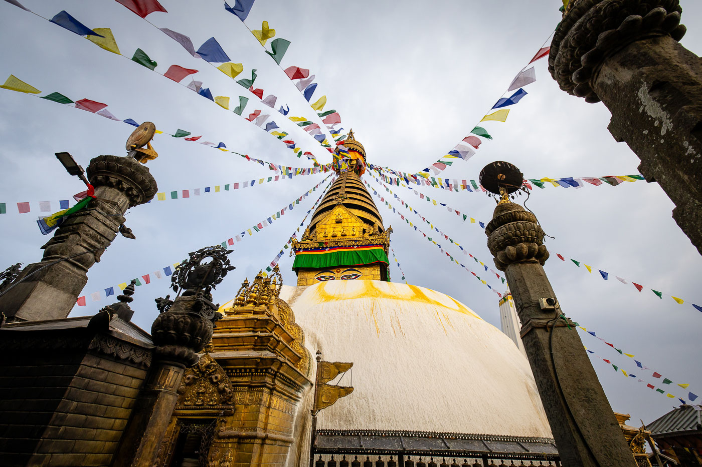 De volgende dag brengen we een bezoek aan Patan, een koningsstad vol tempels, paleizen en ambachten. De architectuur is een droom voor fotografen. Let hier op symmetrie en texturen – de houten gevels zijn perfect voor detailopnames. ’s Middags bezoeken we Swayambunath, de Apentempel, waar we hopen op een zonsondergang met uitzicht over Kathmandu. Helaas is het bewolkt, maar de sfeer maakt veel goed. En: gebruik je statief en een lange sluitertijd voor avondopnames met lichtjes!