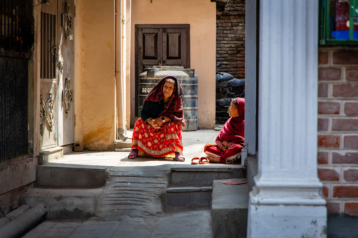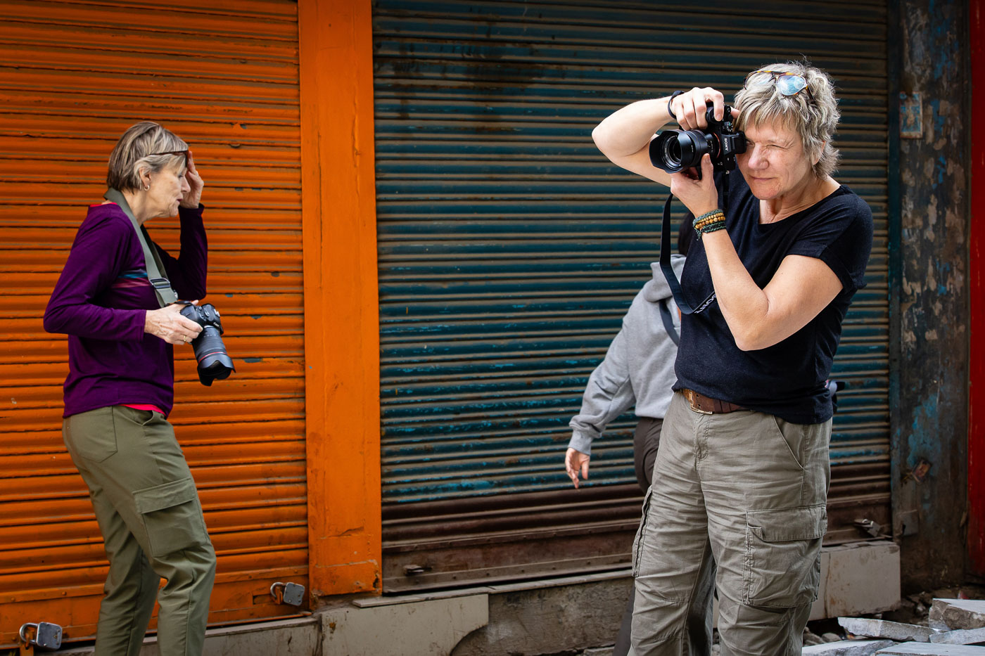Na een comfortabele vlucht via Istanbul arriveren we in de hectiek van Kathmandu. De eerste kennismaking met Nepal is een feest voor de zintuigen: kleurrijke markten, getoeter van brommers en mensen in traditionele kleding. Ons hotel ligt in het hart van Thamel, waar we direct al oefenen met straatfotografie. Eerste tip: fotografeer vanaf ooghoogte van je onderwerp, zeker op een drukke plek als Thamel. Het geeft rust in de chaos.