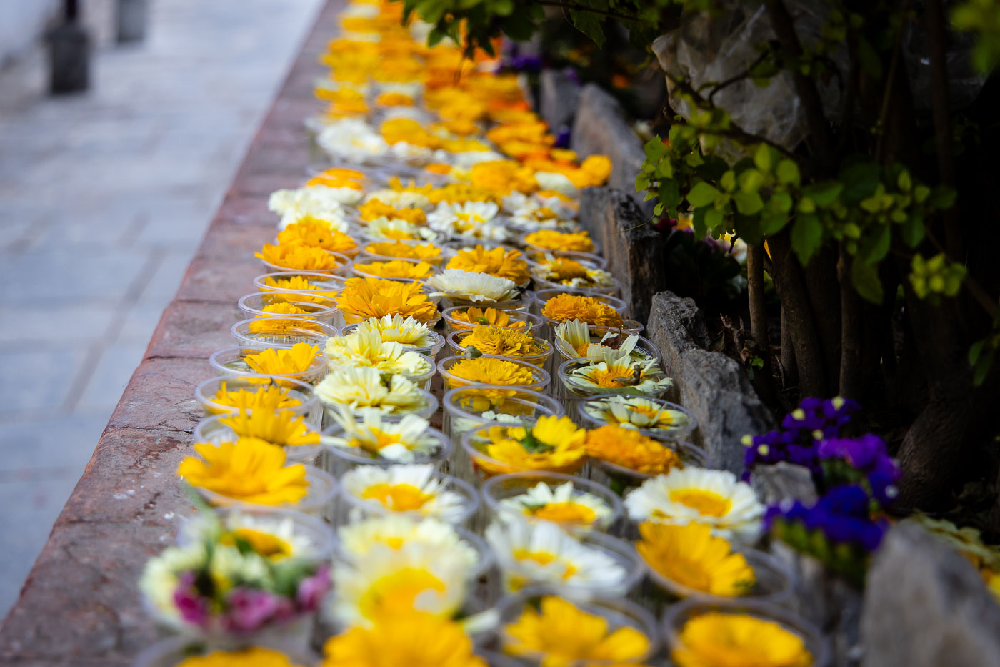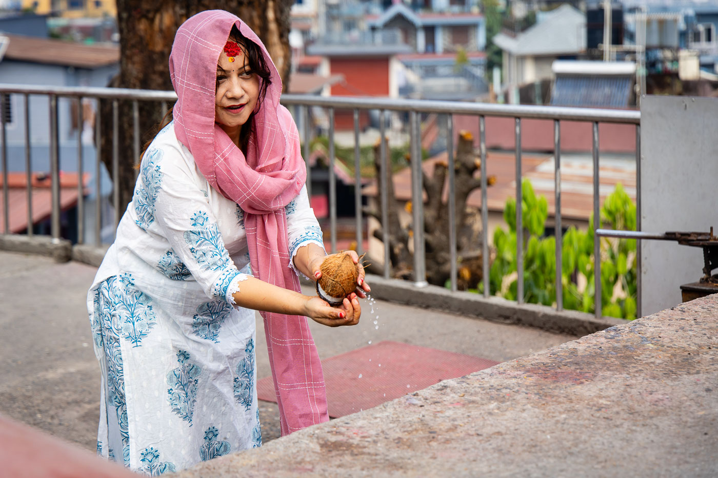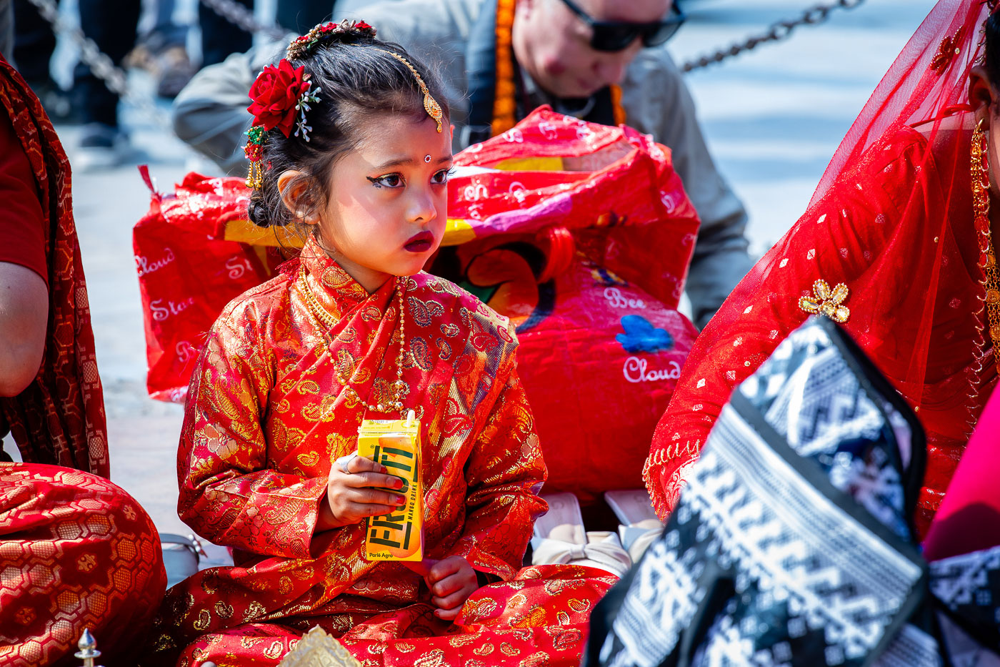 En dan: Holi! Met plastic hoezen om onze camera’s trekken we eropuit. In de straten van Kathmandu worden we begroet met poeder, waterballonnen en heel veel ‘Happy Holi!’. Durbar Square verandert in een explosie van kleur en emotie. Een tip voor festivalfotografie: fotografeer op burst-modus om het juiste moment te vangen. En wissel tussen close-ups en overzichtsbeelden voor een compleet verhaal.
