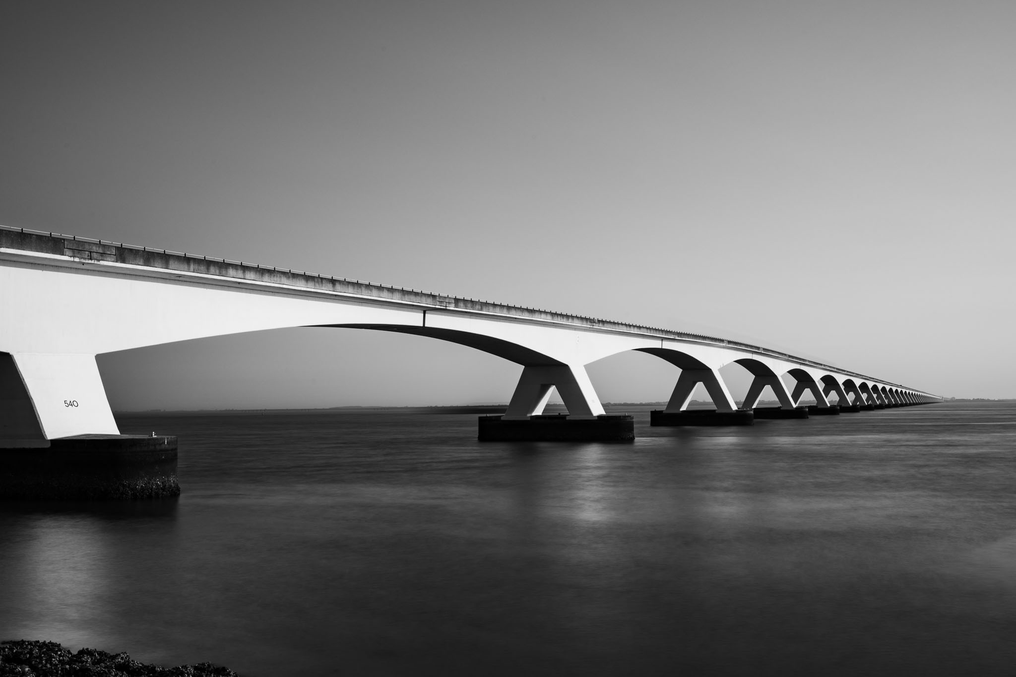We beginnen de dag vroeg – nog voor zonsopkomst zijn we onderweg naar de iconische Zeelandbrug. Deze imposante brug is met zijn herhalende bogen en strakke lijnen een droomlocatie voor landschapsfotografen. In het blauwe uur en het eerste licht van de dag werken we met lange sluitertijden om de brug te isoleren tegen een zachte, egale lucht of juist dramatische wolkenluchten te benutten.