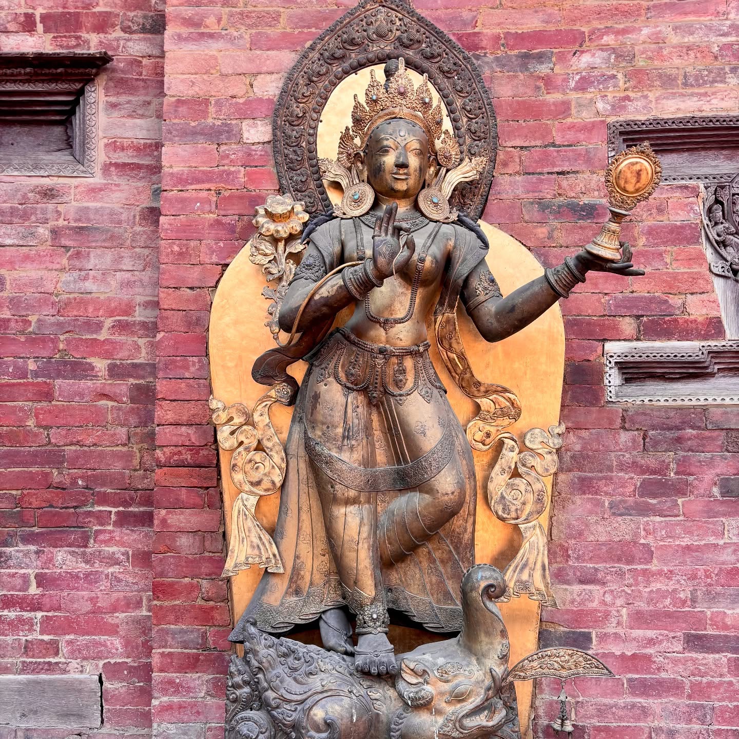 Om 9 uur is de taxi er en we rijden naar Patan. We kopen kaartjes voor de oude binnenstad en de gids verteld leuke weetjes over de verschillende tempels. Helaas voor hem is de groep al snel alle kanten op want er is zoveel te zien. Het oude paleis van de Koning van Patan is toegankelijk en is gedeeltelijk ingericht als museum.