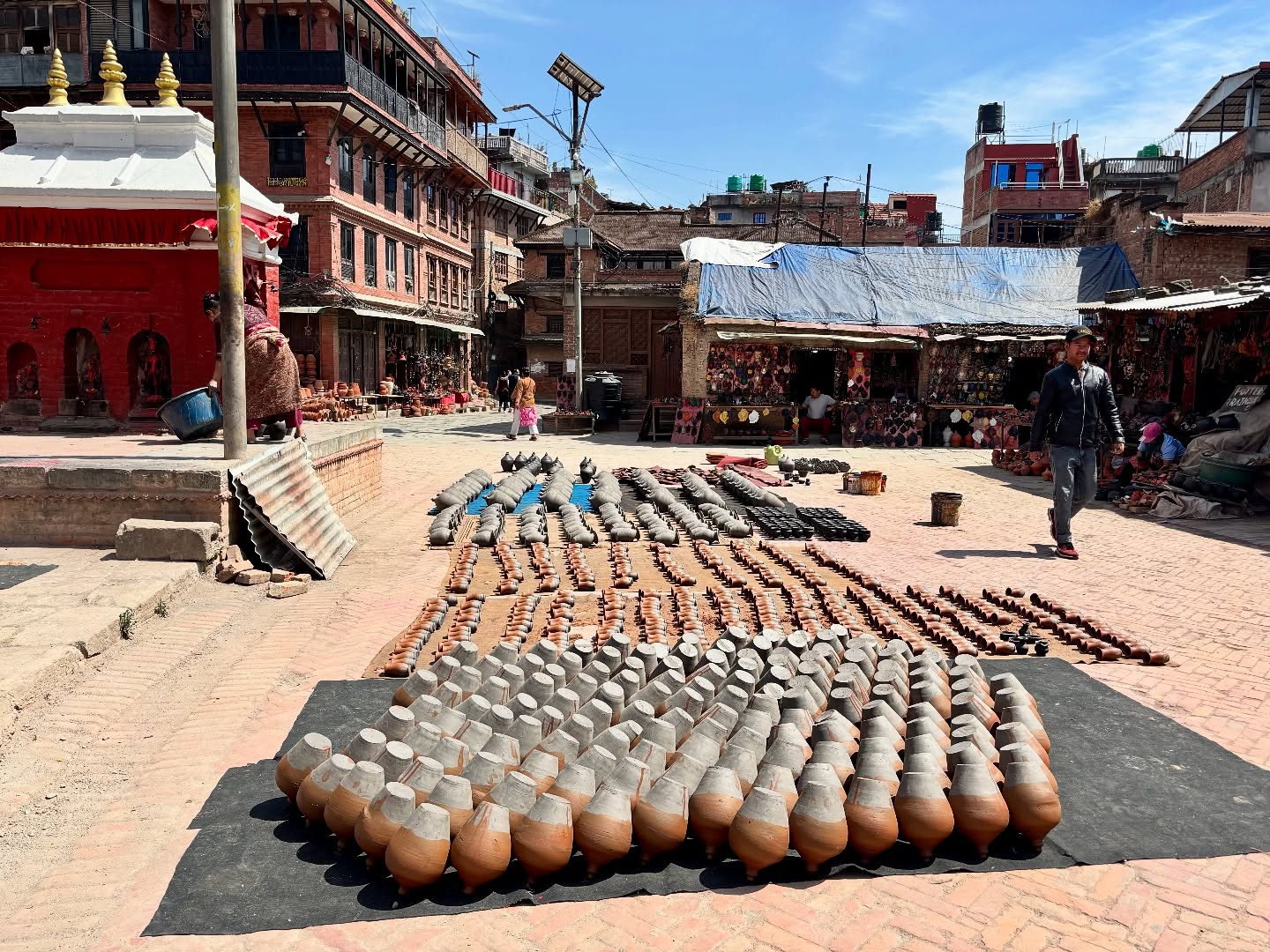 In Thamel pin ik snel even, voor de chauffeur, en dan ontvangen we de sleutels van de kamers. 10 minuten later ontmoet ik Jwala, onze vertrouwde gids. We spreken het programma snel door, drinken wat en dan stel ik ‘m voor aan de groep. En ondertussen is het 15:00 uur en genieten van onze eerste Nepali lunch.