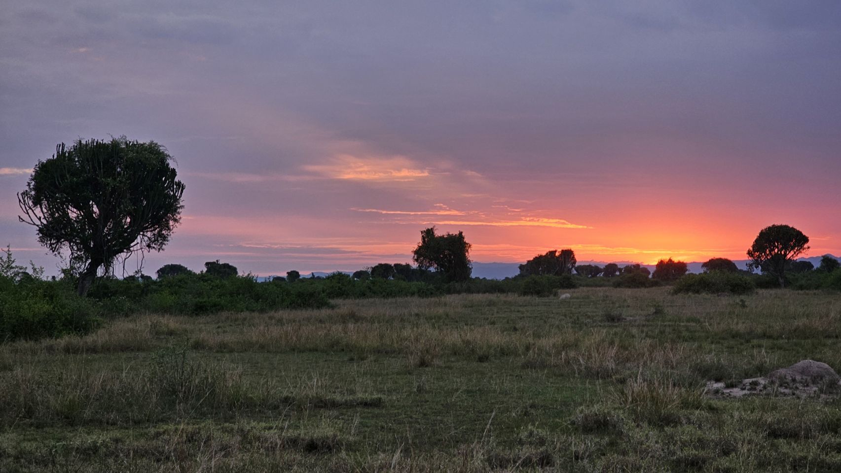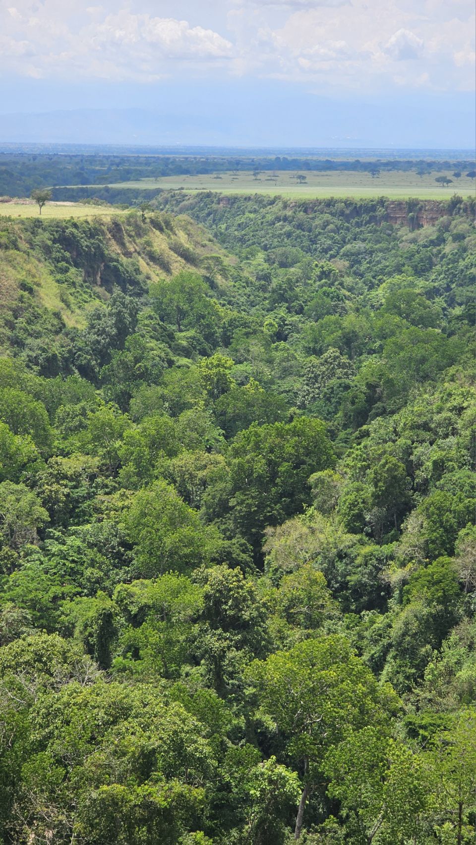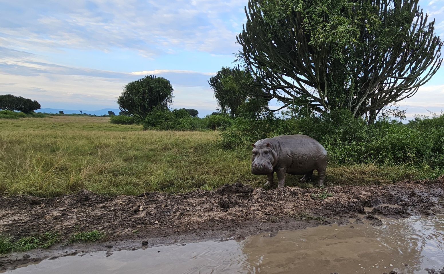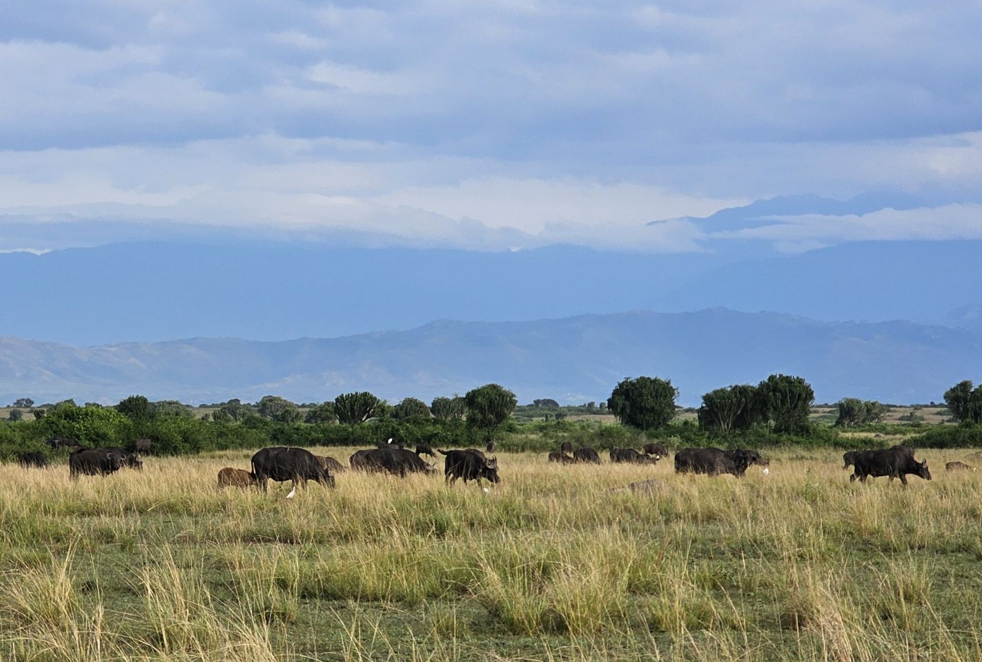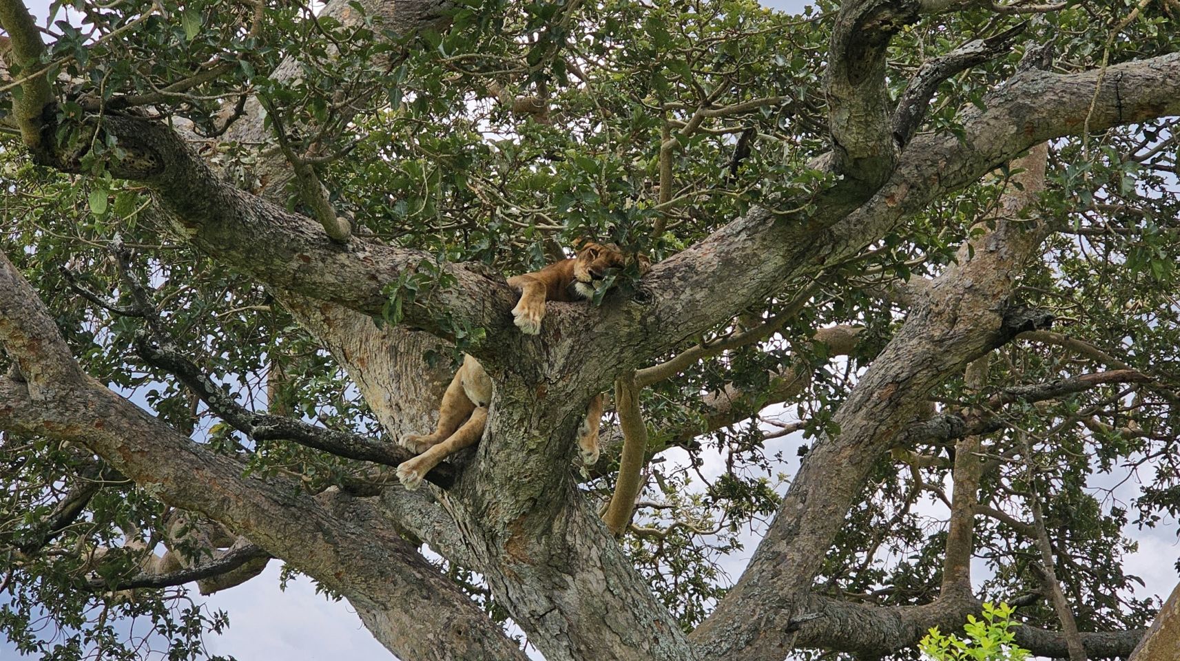 Vannacht was een koele nacht en de dieren hebben het waarschijnlijk koud want er is weinig beweging ( begrijp ik niets van want het is een heerlijk temperatuurtje 🤣 ). Helaas geen katten te zien vanmorgen. Een groep buffels dicht bij elkaar en later nog een groep nijlpaarden in een plas. Terug naar de lodge, inpakken en door naar de Ishasha Southern gate voor de tree climbing lions. Als we vlak bij de gate zijn zien we een andere auto bij een boom staan in het park. Moeten vast de leeuwen zijn. Wij door de gate en op zoek naar die boom. Toch nog een stukje verder dan verwacht, maar dan vinden we de boom met 2 dames en 2 jonge leeuwen. Helaas besluiten de 2 jonge leeuwen de boom te verlaten. Andere wordt een speld in een hooiberg zoeken dus door naar onze eindbestemming voor vandaag. Door de bergen rijden we naar Ruhija. Schitterende vergezichten over de theeplantages en tropische bossen waar we morgen op zoek gaan naar de gorilla’s. Slapen doen we vannacht op ca. 2000m hoogte.