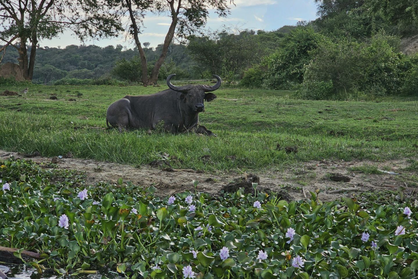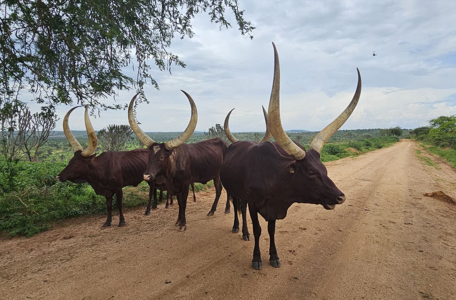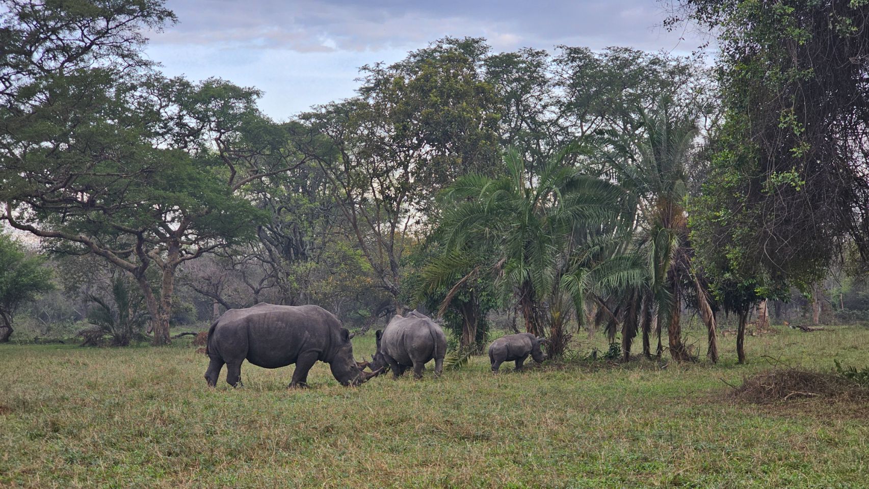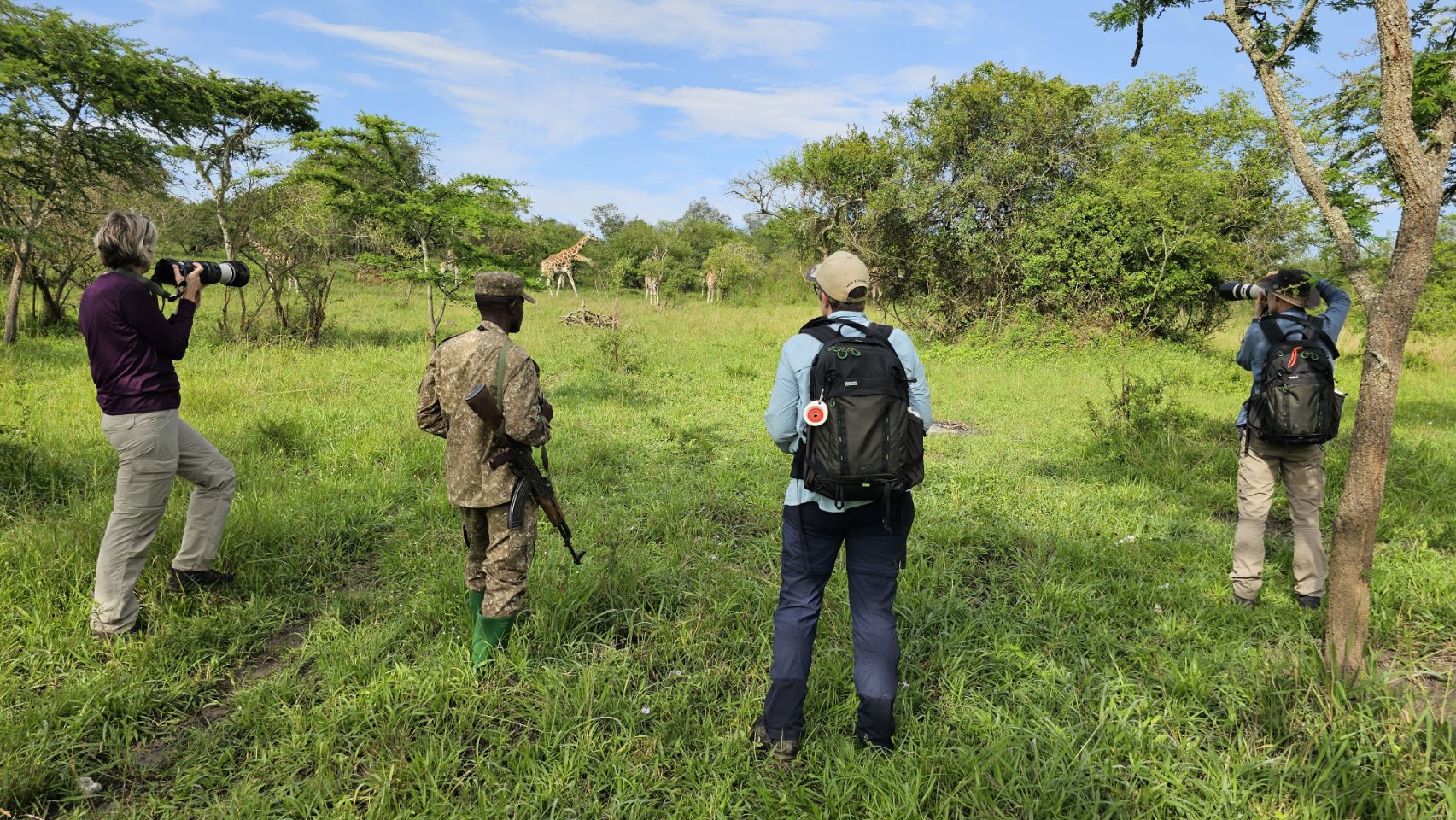 Vandaag om 7 uur het bed uit want er kunnen neushoorns bij de lodge rondlopen. Kom al snel een ranger tegen die mij voorbij de receptie stuurt. En daar staan de eeste 3 neushoorns. Wauw. Kijk eens rustig verder rond en daar nog 2. Nog een groep van 5. Karin gauw een berichtje sturen om ook naar buiten te komen en ondertussen tel ik in totaal 12 neushoorns. Ben echter iets te ver doorgelopen en wordt door de ranger terug geroepen. Na ruim een uur is het tijd voor ontbijt. We bekijken nog wat van de andere accomodaties en vertrekken daarna naar Murchison Fall National Park. Eerste stop is de watervallen waarna we een gamedrive in het park doen. We vinden vele soorten antilopen, waterbok, hartenbeest. Verder nog een paar olifanten in de verte, giraffes en twee leeuwinnen met kleintjes verscholen onder de struiken en honderden buffels is de opbrengst van vandaag. Weer een top dag in Uganda.