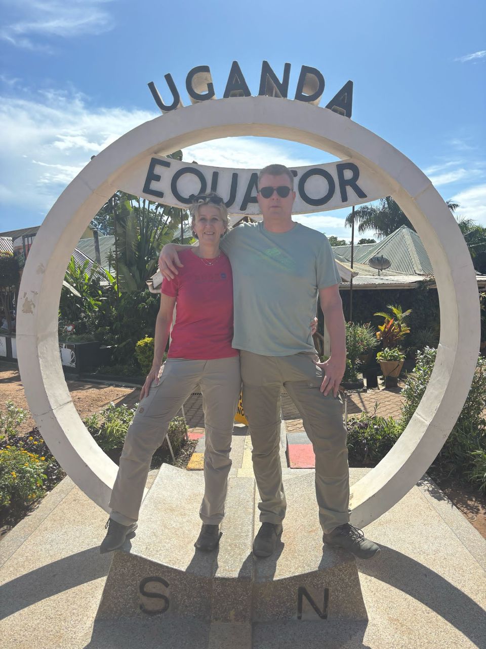 Om 7 uur ontbijt en daarna op pad voor een laatste game drive / walk in Lake Mburo National Park. Bij de gate ontmoeten we onze gids en gaan op zoek naar giraffe en zebra’s. Van beide hebben er hier meer dan voldoende. In de buurt van een groep giraffe stappen we uit de auto en gaan we te voet verder. Rustig lopen we met de groep mee naar de drinkplaats. Hierna rijden we verder door het park en zijn rond 11 uur weer in de lodge. Pizza voor lunch en dan op weg naar Entebbe. Een rit van bijna 6 uur door vele dorpjes. In een van de dorpjes hebben we weer een stop gemaakt bij de evenaar. Daar waren ook souvenierwinkeltjes en je raadt het al, Karin moest naar binnen. Ik kon weer afdingen en we gingen natuurlijk met de nodige souveniers weer de deur uit. Onze laatste nacht in Entebbe is daar….
